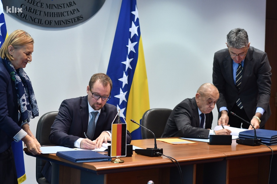 Министар финансија и трезора БиХ Вјекослав Беванда и директор њемачке Развојне банке КfW у БиХ Matthias Schmidt-Rosen потписали су споразум о зајму за изградњу Вјетропарка Хргуд на подручју Требиња и грант средствима за пројект прикупљања и третман отпадних вода у Зеници.